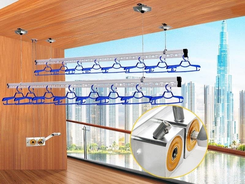 - Giàn phơi gắn trần không tốn diện tích ban công